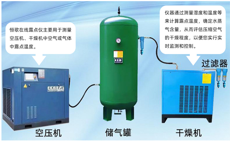 對于壓縮空氣系統(tǒng),建議安裝在干燥機出口處,以便實時監(jiān)測干燥后的氣體露點。